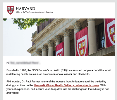 GetSmarter has a tactical plan for emails to ensure new and repeat customers for our products. Below is a typical email that will be sent to students who have registered for an online short course.