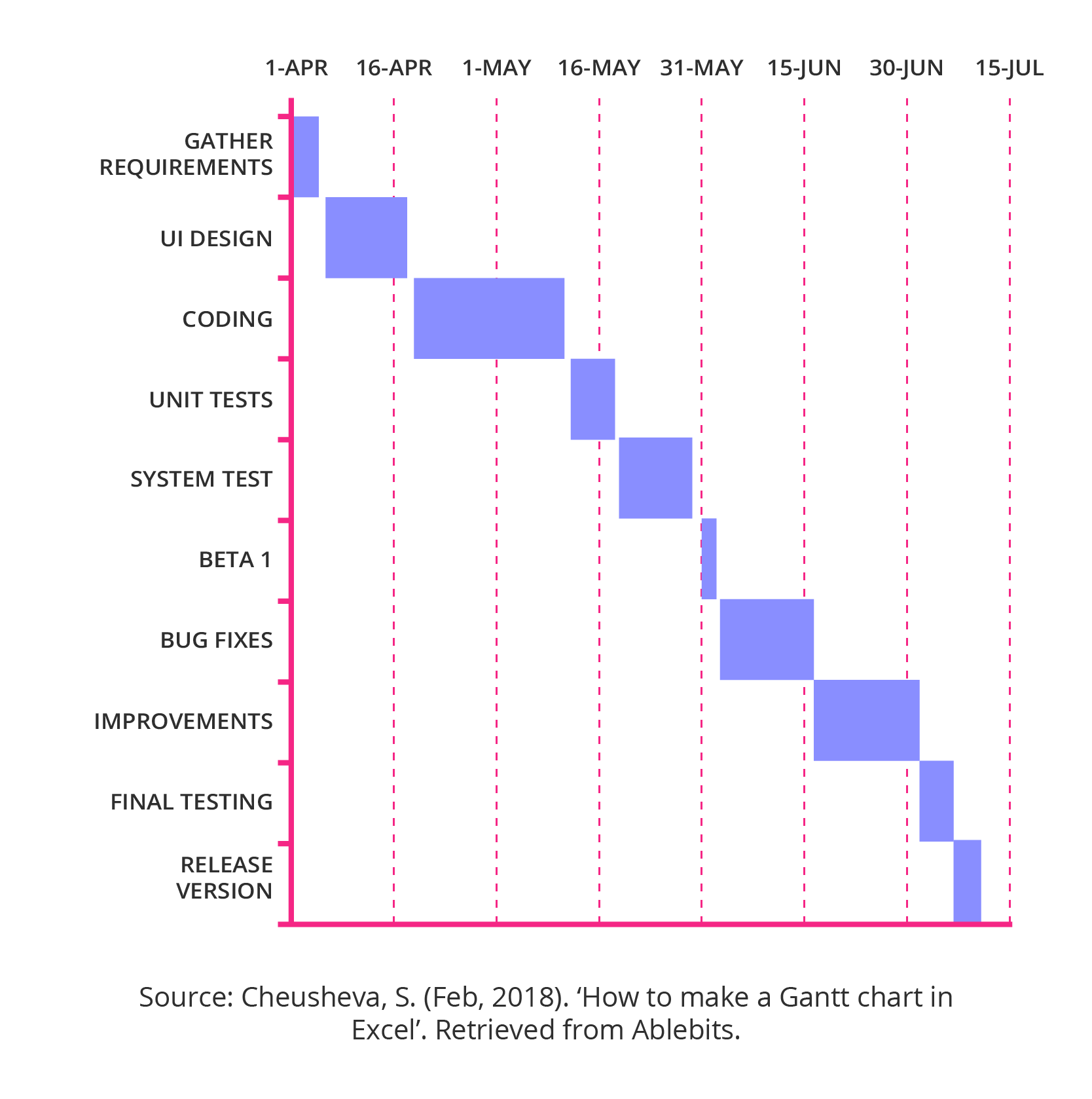 - Easy for people involved in different parts of a process to see when they are meant to start and finish work