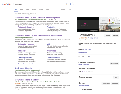 Below is a screenshot of the search engine results for the name, “GetSmarter”.