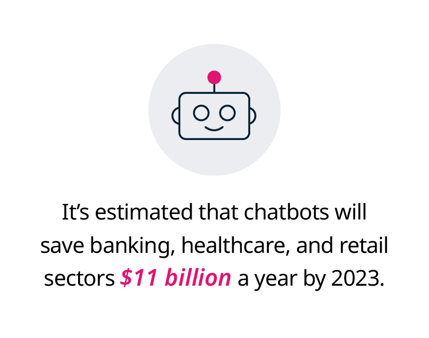 Chatbots are also increasingly being used to engage customers during the sales process. In fact, Business Insider’s Insider Intelligence predicts that consumer spend through chatbots will reach $142 billion by 2024 worldwide – up from $2.8 billion in 2019. It’s estimated that chatbots will save banking, healthcare, and retail sectors $11 billion a year by 2023.12