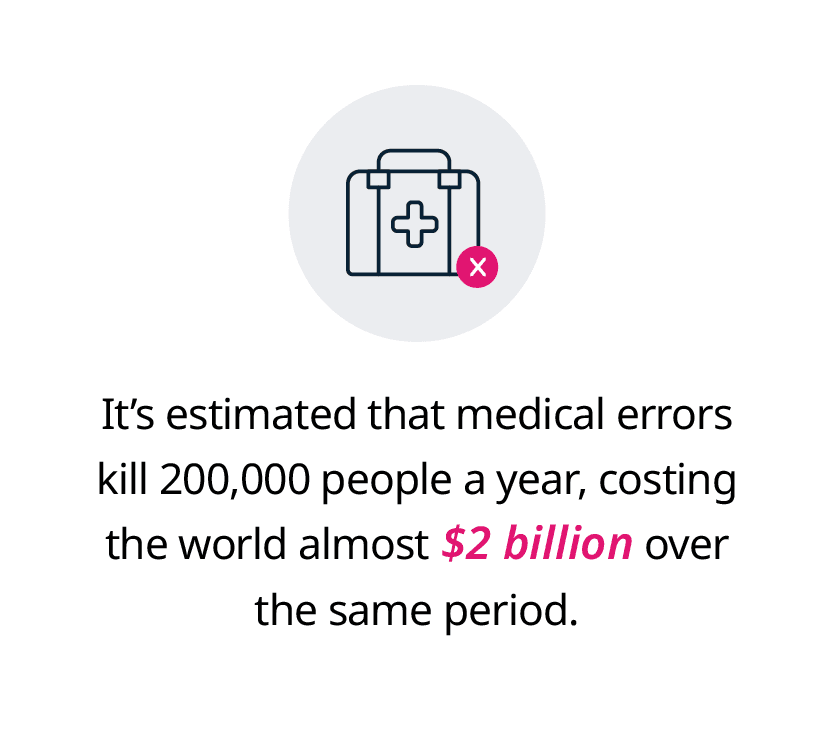 AI can also take away certain human elements, such as medical errors. It’s estimated that medical errors kill 200,000 people a year, costing the world almost $2 billion over the same period.16
