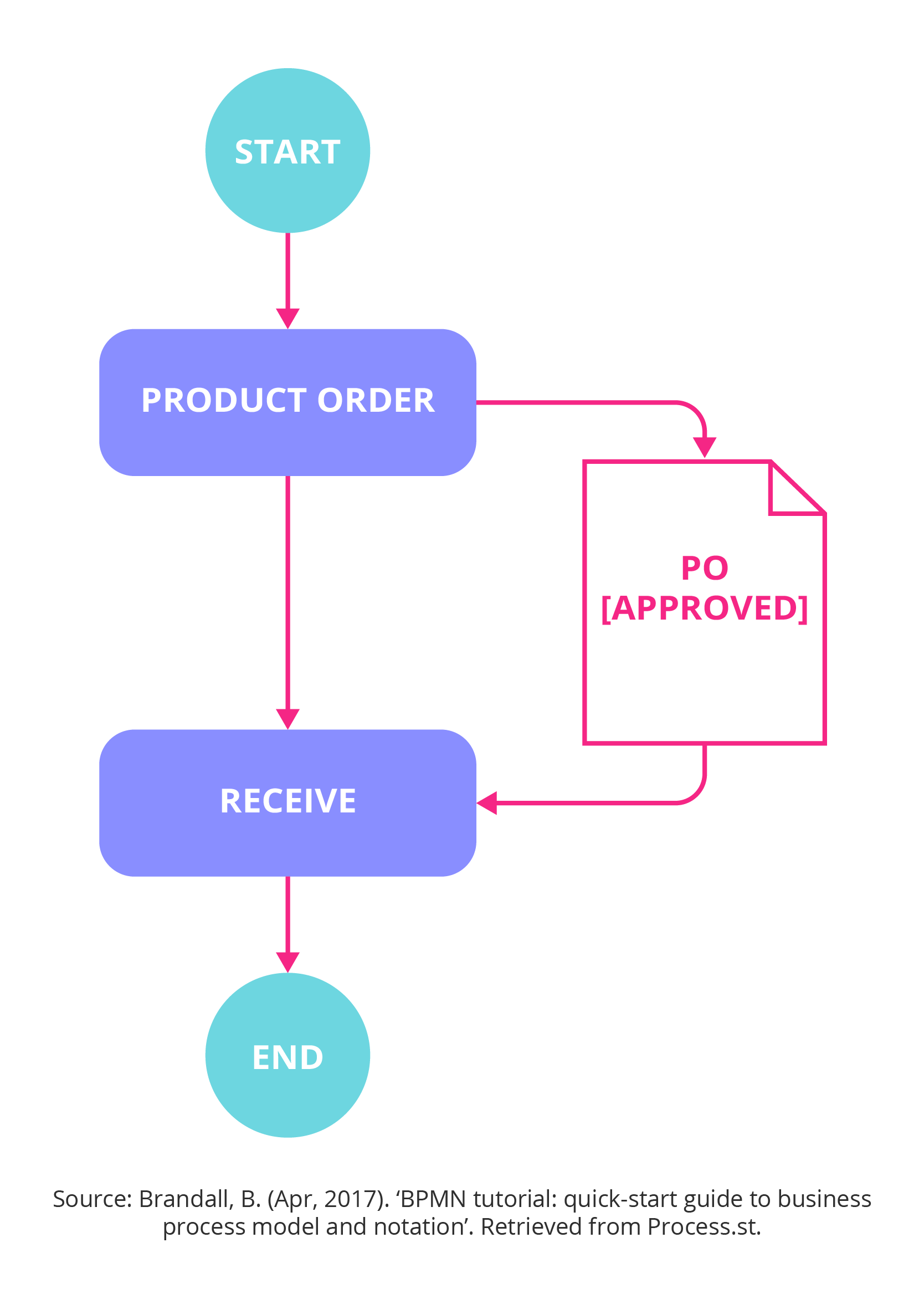 - Sequence flows are displayed as solid lines. These depict the order of activities.