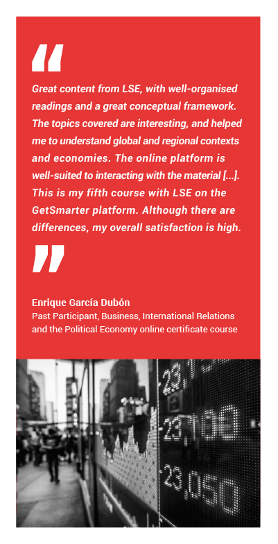 The portfolio of LSE online courses furthers the School’s vision for 2030 – to shape the world through impactful change. This vision, and the courses that support it, rests on three pillars: ensuring excellence through diversity and inclusion, achieving global impact, and securing a sustainable future. Through its collaboration with GetSmarter, a 2U, Inc. brand, LSE is able to bring its expertise to participants across the world, providing access to industry experts and highly regarded academics in a wide variety of fields.