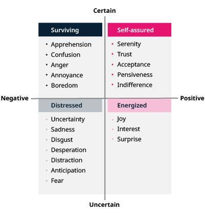 To better understand how to support professionals and their development needs, GetSmarter, a 2U, Inc. brand, surveyed 648 people across the globe, exploring their attitudes towards work now compared to 12 months ago. Participants were asked to rate their current feelings across a broad spectrum, and these were grouped into four main emotional states: