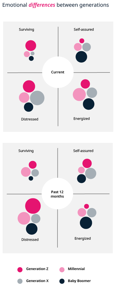 Over the past year, many Generation Xers have had to homeschool their children for the first time while simultaneously holding down a job.7 The stress of this, on top of potential health concerns for their family and elderly parents,8 have left them the most distressed out of all the generations.