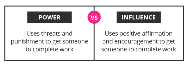 Power and influence both refer to naturally possessed traits that follow as a consequence of authority. The difference lies in how these two approaches to leadership encourage a team to complete their work.