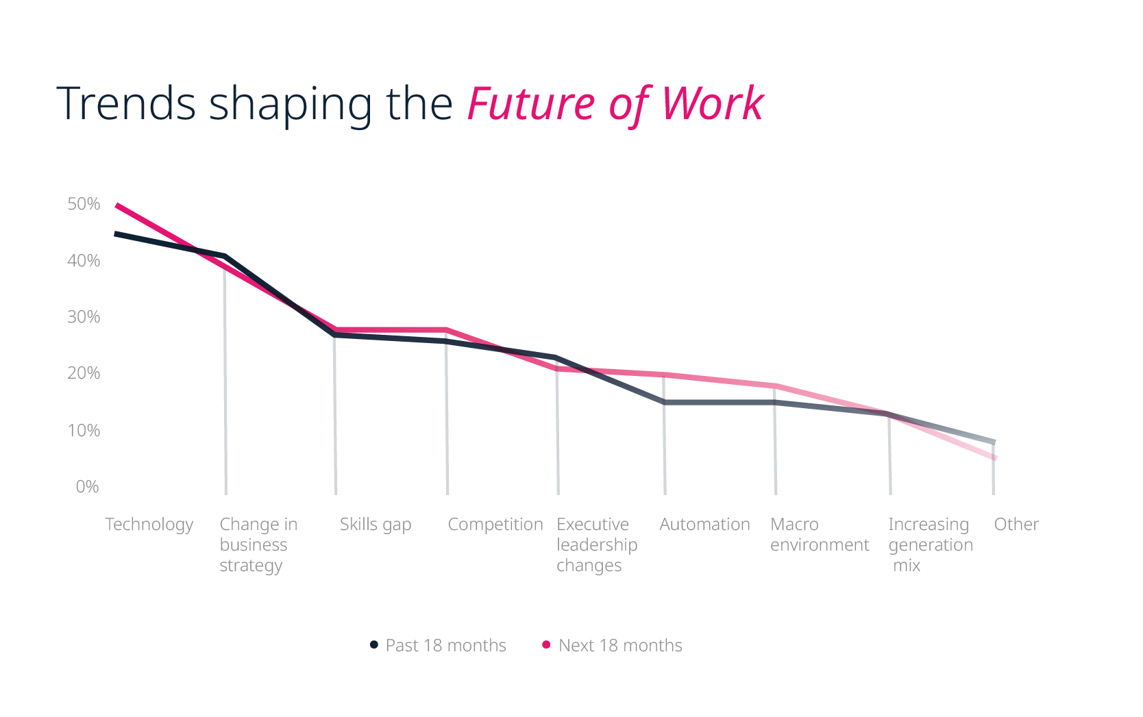 GetSmarter’s ‘The Future of Work Is Here’ report revealed that a majority of respondents point to technology as one of the main drivers of change within their organizations over the past 18 months. Perhaps more importantly, they also expect tech to be the number one driver of change in the next 18 months.