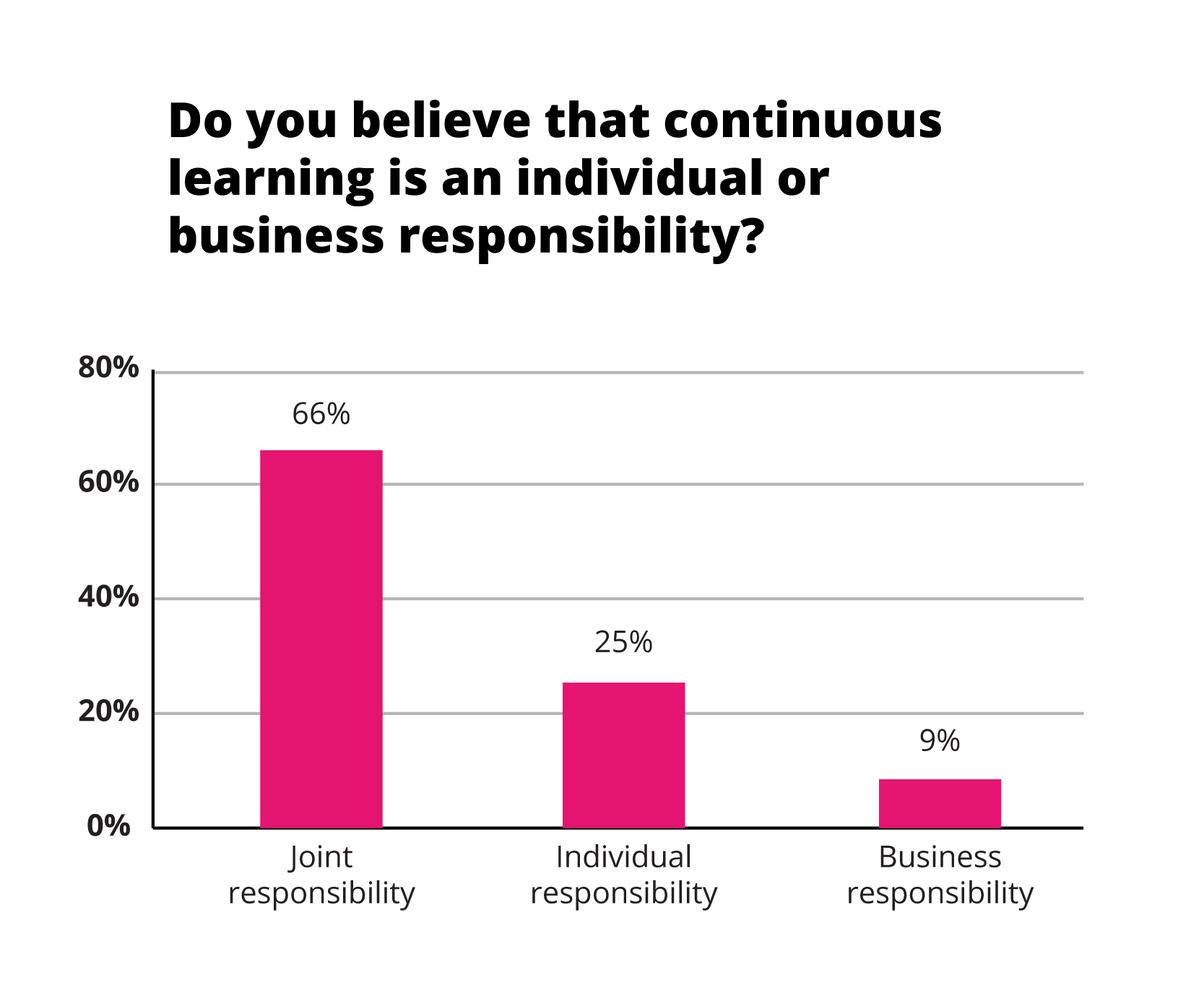 This doesn’t mean that the entire onus is on a company to upskill their staff though. From GetSmarter’s research respondents, 66 per cent of HR, L&D, and talent managers believed that continuous learning should be a joint responsibility between the business and the individual. By fostering a culture of learning, employees will also be more encouraged to seek out tools for their own development alongside those offered by their company.