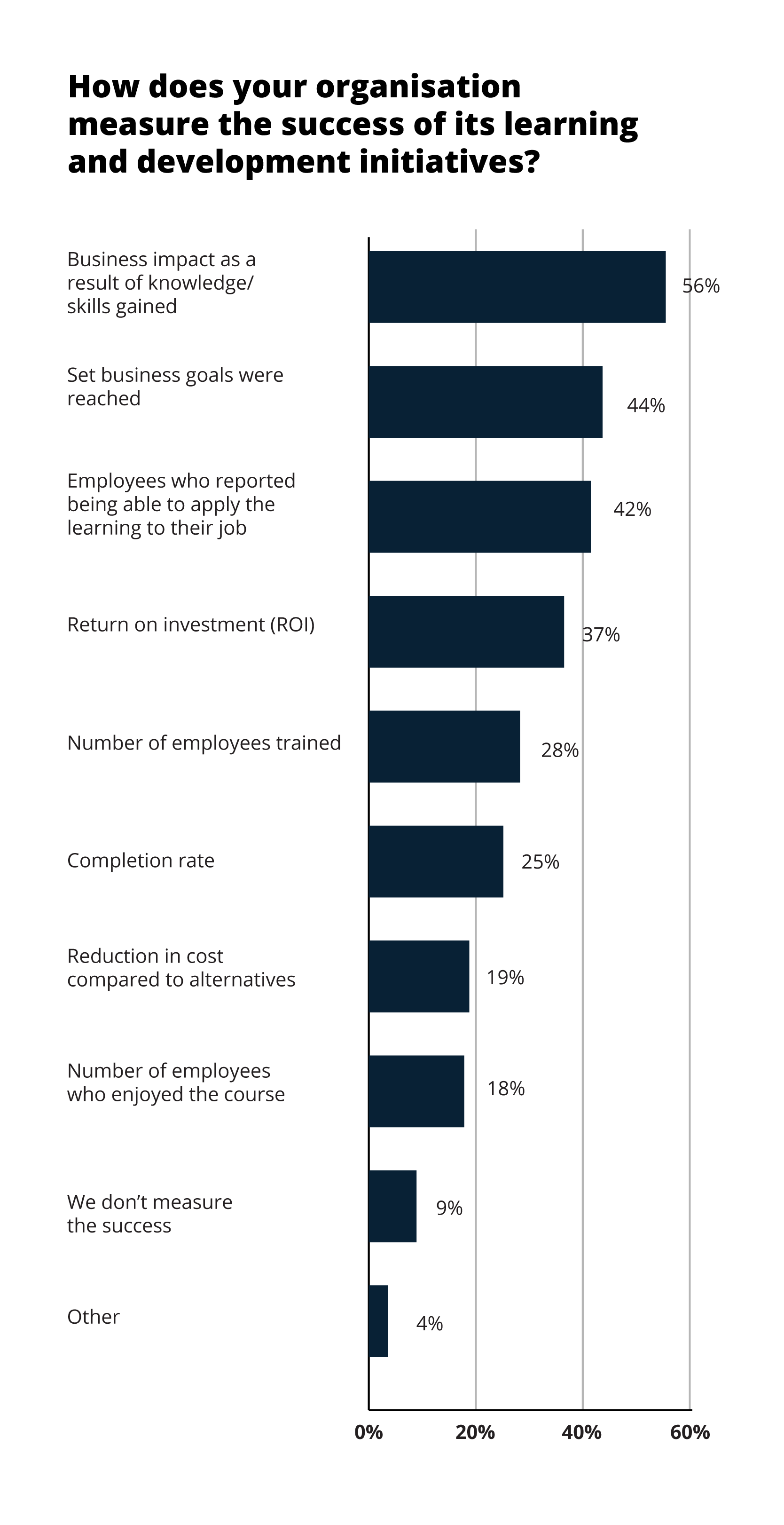 In fact, the majority of respondents in GetSmarter’s research ranked ‘business impact’ as the most important indicator of success for learning and development, followed by ‘reaching business goals’. By approaching L&D strategically, companies can ensure they’re sending their employees on courses that will best serve both individuals’ career goals and the business as a whole.