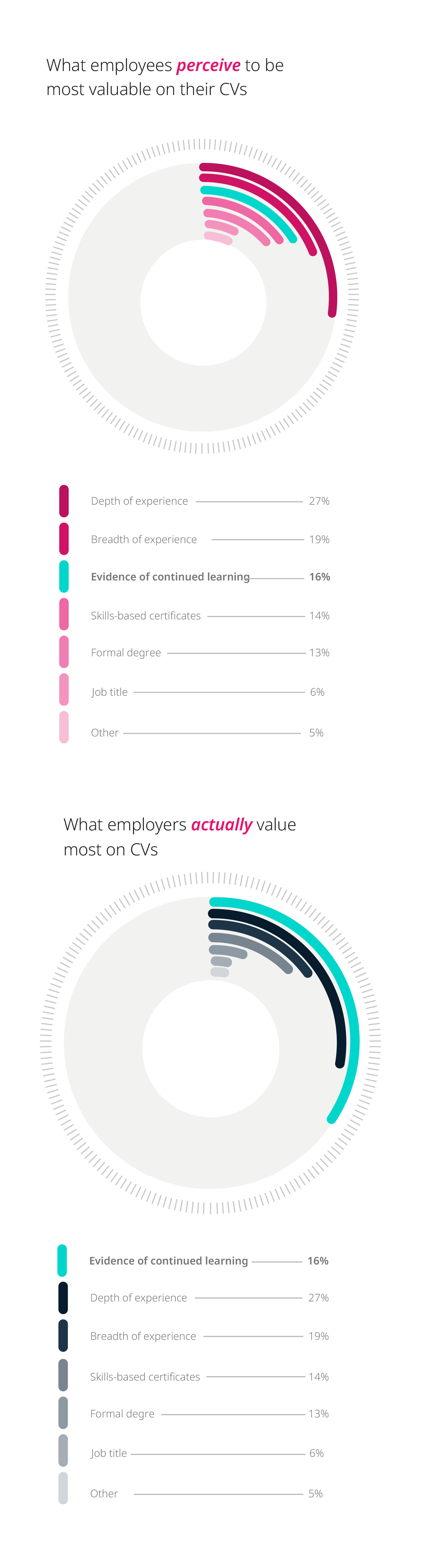 From the GetSmarter report, it’s clear that evidence of continued learning and skills-based certificates play an important role in setting professionals apart in the market – and in some hiring scenarios, skills-based certificates are ranked higher than formal degrees by HR and talent managers.
