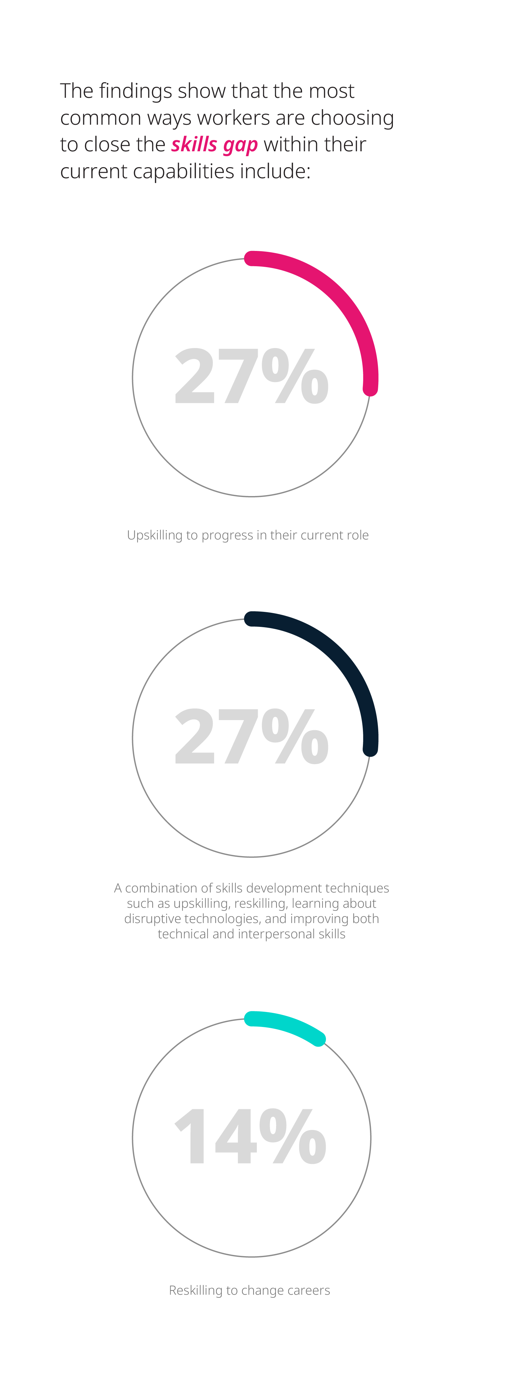 The report discovered that although technology is one of the biggest catalysts for change, ultimately the impact of this change is human. As machines augment our workplace, we’re left to explore the unique skills that set us apart as people. What this climate of change has shown is that lifelong learning and the need to upskill has become critical to individuals and organizations alike.