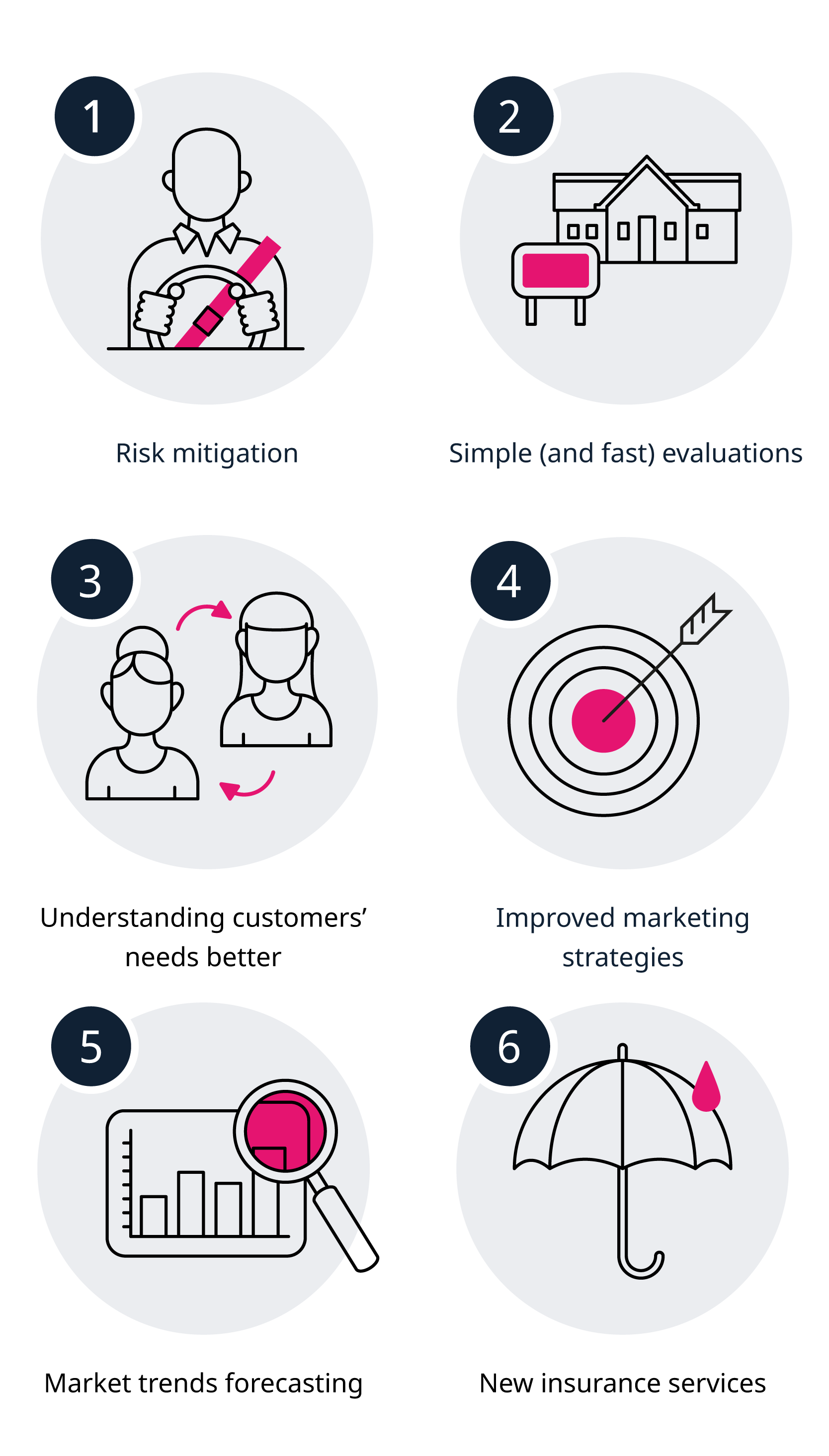 - Risk mitigation. Predictive analytics helps assess commercial viability and thus reduce risk when it comes to real estate investments, with realtors and buyers now having access to accurate metrics drawn from reliable real estate data.19
