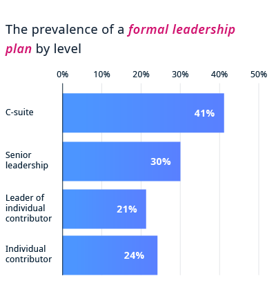 Barely a quarter of our respondents possess a formal leadership development plan, and this figure drops to just 24% for individual contributors and 21% in the case of their leads.