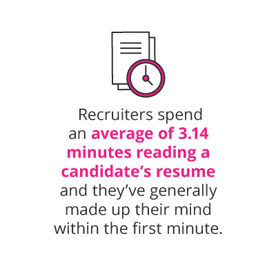 Kim notes it’s imperative to focus on your unique selling points as a person and to immediately capture the recruiter’s attention. Recruiters spend an average of 3.14 minutes reading a candidate’s resume and they’ve generally made up their mind within the first minute.2
