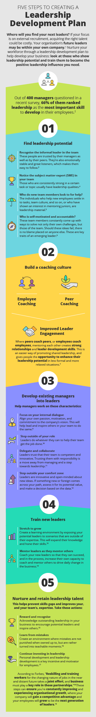 - 5 Kuhel, B. (Mar, 2018). ‘How to spot a potentially amazing leader within your team’. Retrieved from Forbes.
