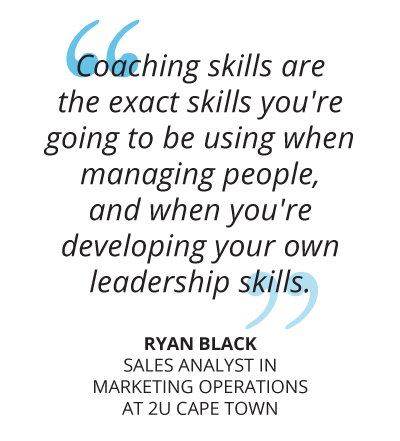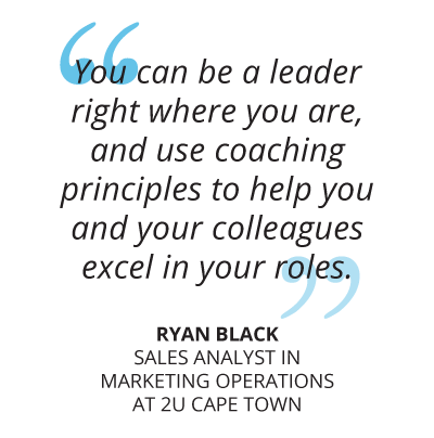 While external executive coaches play an important role in facilitating organisational development, one doesn’t need to aspire to become a professional coach in order to develop coaching skills. This is the case for Ryan Black, Sales Analyst in Marketing Operations at 2U Cape Town. For Ryan, who recently completed the University of Cape Town Executive and Management Coaching online short course, it was more about developing his own leadership skills.