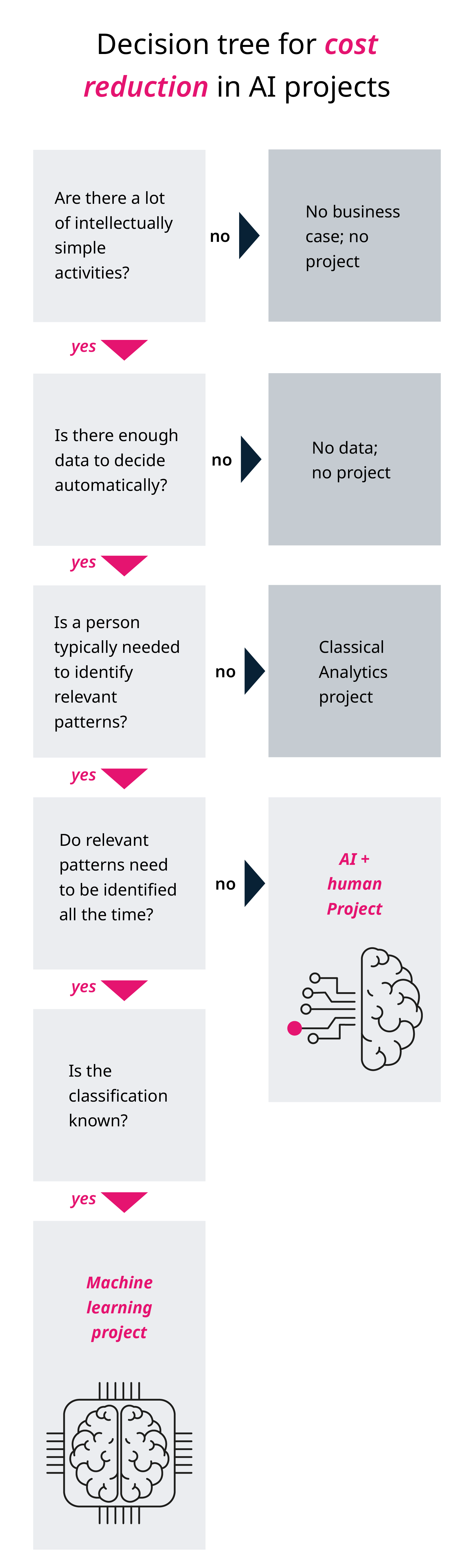 The framework below can serve as a guide to know what AI process could be implemented for cost reduction.