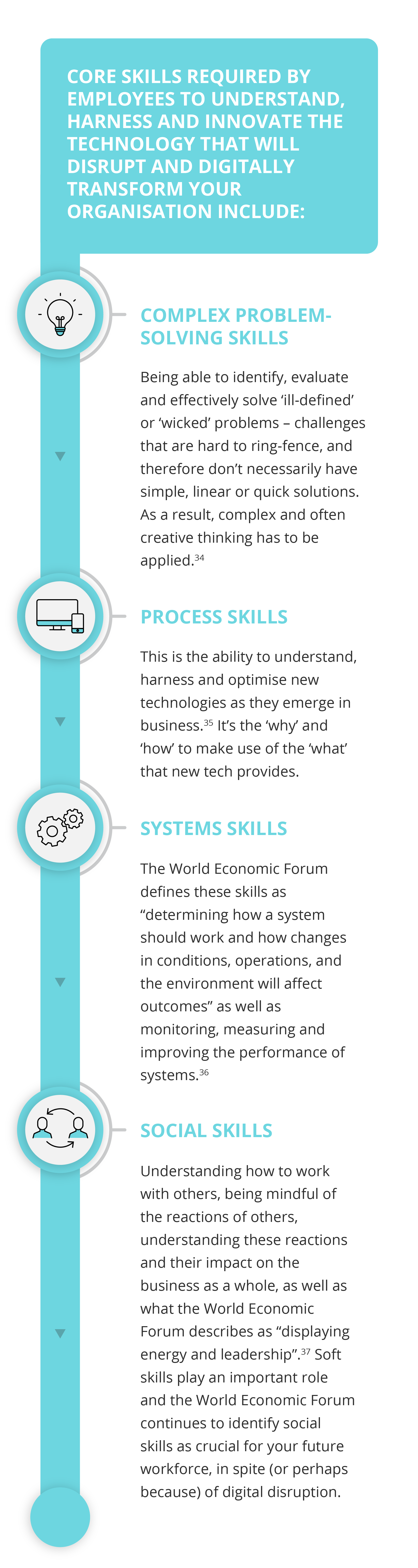 ‘Digital transformation’ is a buzzword in business for good reason. Mobile internet and cloud technology account for the biggest technological drivers of change in the workplace, closely followed by advances in computing power and big data, new technologies and the Internet of Things (IoT).32